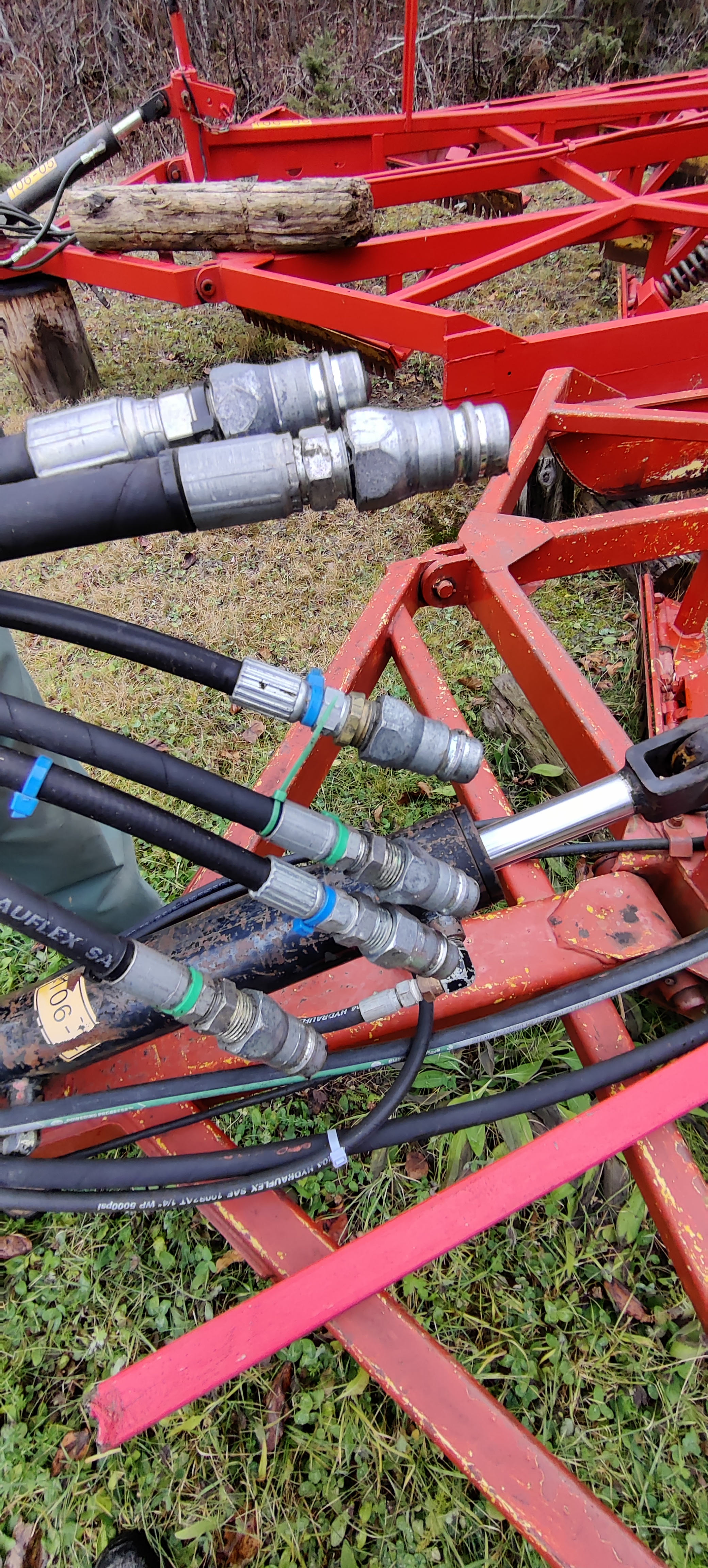 Tracteur de ferme avec plusieurs sorties hydrauliques (avant et arrière).